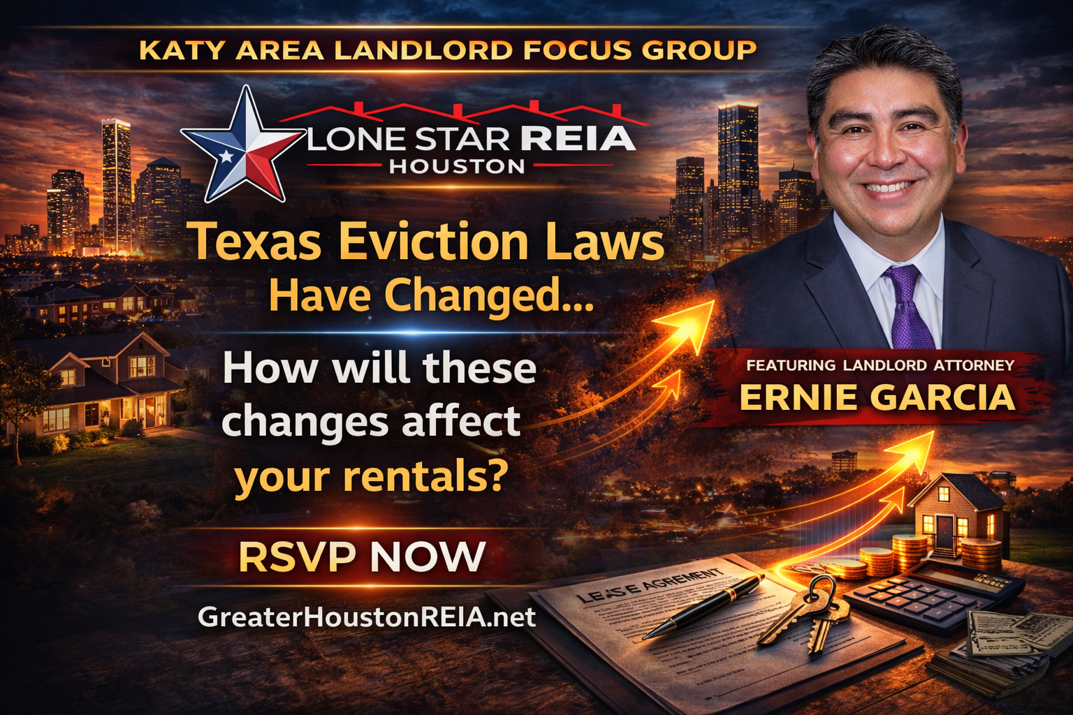 Join us for the April Greater Houston REIA Landlord Focus Group as Landlord Attorney Ernie Garcia breaks down what every Texas landlord needs to know right now.